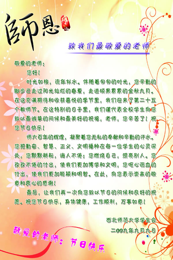 致我们最敬爱的老师