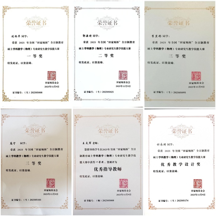 11月6日至9日,由全国教育硕士专业学位研究生教学技能大赛专家委员会指导、华南师范大学主办的2025年全国 “田家炳杯”学科教学(物理)专业研究生教学技能大赛决赛暨全国学科教学(物理)专业研究生人才培养研讨会在广州举行。日韩人妻无码一区二区三区久久99_日韩精品一区二区三区中文在线_无码日韩精品一区二区免费_久久久91精品国产一区二区三区_亚洲精品久久久一区黄无码_国产91精品一区二区麻豆网站_成人国内精品久久久久影院代表队在本次比赛中表现优异,共获得一等奖1项、二等奖1项、三等奖2项,并获得优秀教学设计奖和优秀指导教师奖。